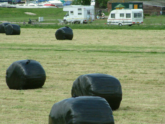 Hoogmade | Grasbalen liggen klaar om afgevoerd te worden.