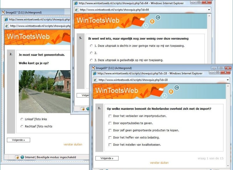 Naast Quayn, experimenteerden we met diverse andere online toetssystemen, soms op basis van PhP (Jinny cms) en soms op basis van ASP.NET. Uiteindelijk hebben we alleen Quayn doorontwikkeld.